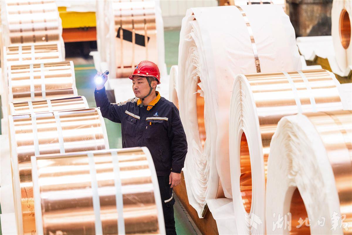 12月16日,位于黄石下陆区的中铜华中铜业有限公司,员工正检测铜板带产品质量,全力冲刺“全年红”。