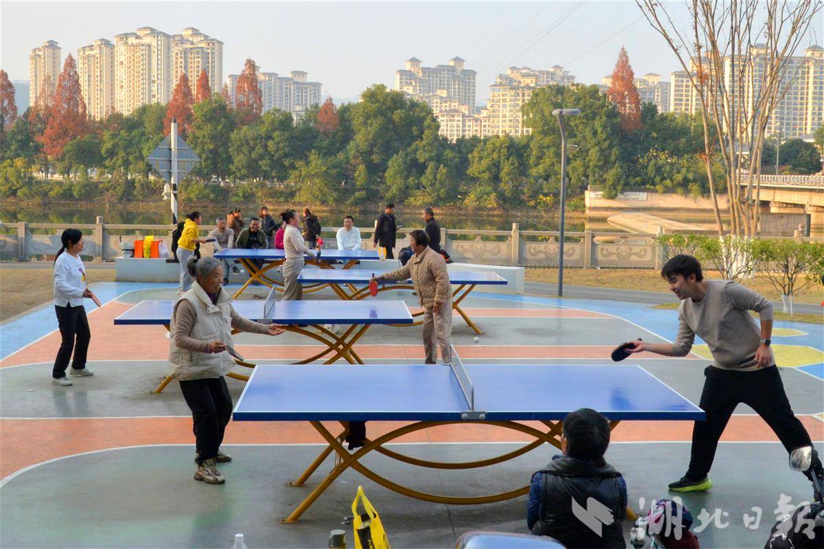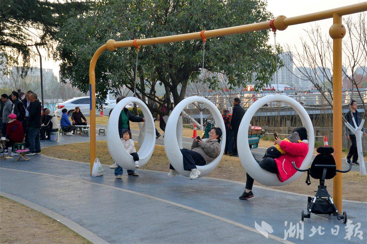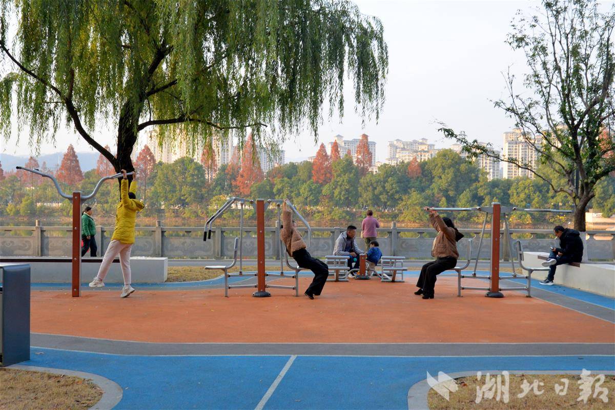 12月16日,市民在宜昌市夷陵区滨河口袋公园里休闲游乐。冬日暖阳下,宜昌市民纷纷走进口袋公园,或遛娃聊天、或健身运动,在家门口享受触手可及的幸福空间。