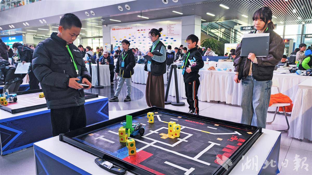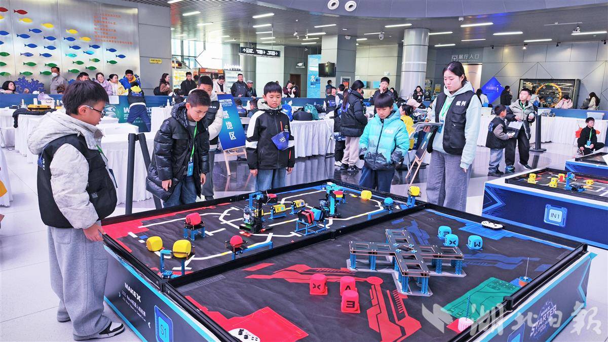 12月14日,WRCT2025世界机器人大赛武汉市选拔赛在武汉科学技术馆落下帷幕。来自湖北、河南的168名中小学生组成100多支队伍,分别参加MakeX Inspire智慧物流、MakeX Starter全芯征途、MakeX Explorer数智先锋三大赛项共计4个组别的比赛。经过激烈角逐,武汉市8名选手在各自赛项和组别夺得冠亚季军,成功晋级2025世界机器人大赛总决赛。世界机器人大赛(World Robot Contest)由中国电子学会主办,自2015年起已成功举办10届,共吸引全球20余个国家50余万名选手参赛,被广泛赞誉为机器人界的“奥林匹克”。(视界网 马二虎 摄)