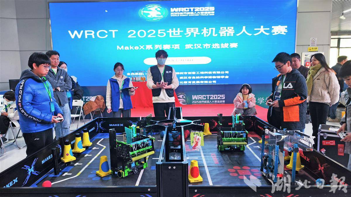 12月14日,WRCT2025世界机器人大赛武汉市选拔赛在武汉科学技术馆举办,选手们正在全情投入激烈比拼。