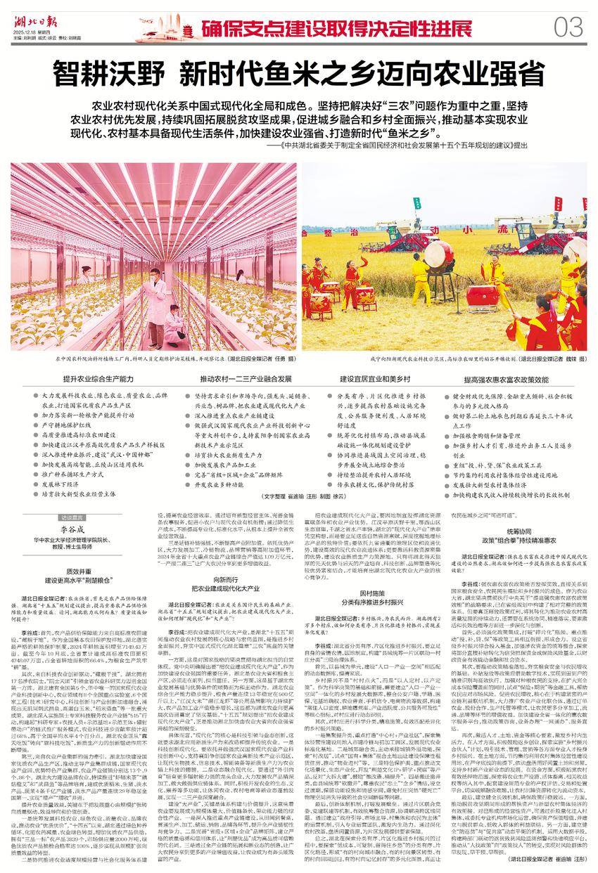 李谷成:把农业建成现代化大产业,是湖北“十五五”期间推动农业农村发展的核心战略与宏伟蓝图,是推进乡村全面振兴、夯实中国式现代化湖北篇章“三农”底盘的关键举措。