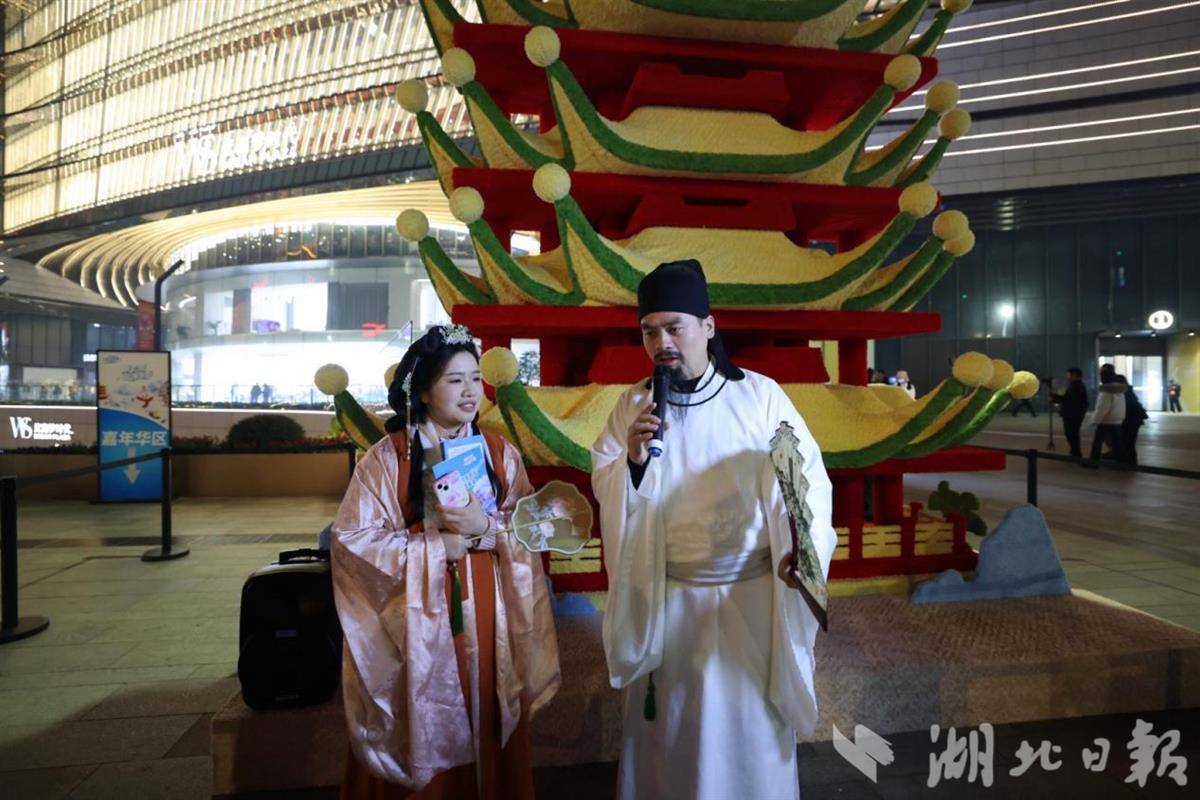与此同时,武商梦时代外广场开启“一鹅·冬日奇旅”冰雪嘉年华,融合互动游戏、文艺表演、打卡拍照和商品展销。游客可参与“雪球大作战”“雪中寻宝”等趣味挑战,在黄鹤楼巨型毛绒玩偶前对诗、在知音号游轮模型旁跳舞。现场还有“一鹅”、北极熊等吉祥物巡游及“雪域狂欢”表演,气氛热烈。该嘉年华将持续至12月21日,活动期间,游客通过收集贴纸可兑换商家代金券、雪场体验券等礼遇。