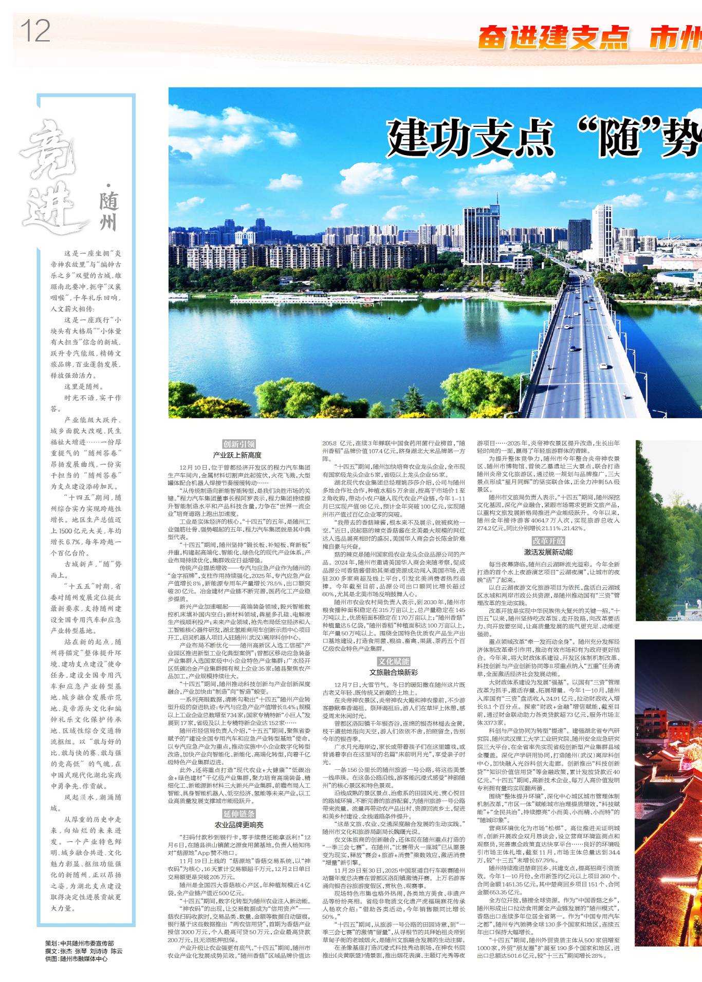 适应新形势、布局新赛道。“十四五”期间,随州制定了《应急产业示范基地建设方案》《专汽产业转型升级方案》等政策措施,实施专汽“1335”转型升级等行动。