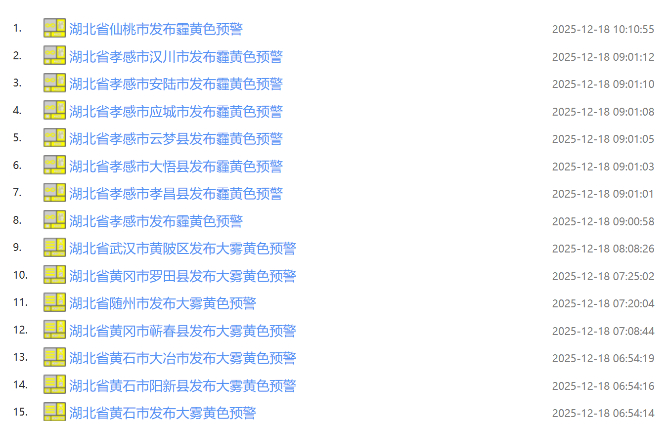 另据@湖北高速:7时30分,因大雾,省内部分收费站入口临时交通管控,主要集中在武汉、咸宁、孝感、黄冈等地区。9时30分,因大雾,省内部分收费站入口临时交通管控,主要集中在武汉、咸宁、孝感、黄冈、随州、荆州等地区。请过往司机朋友注意谨慎驾驶。