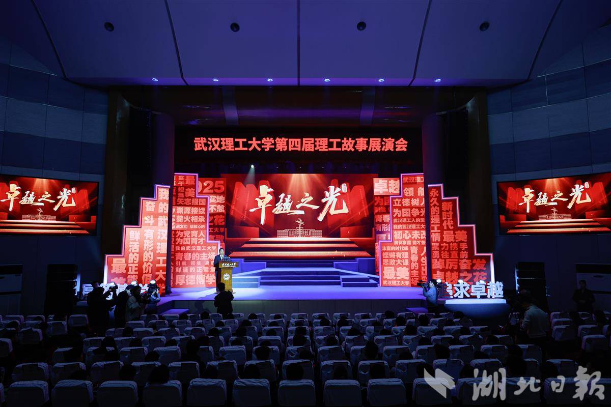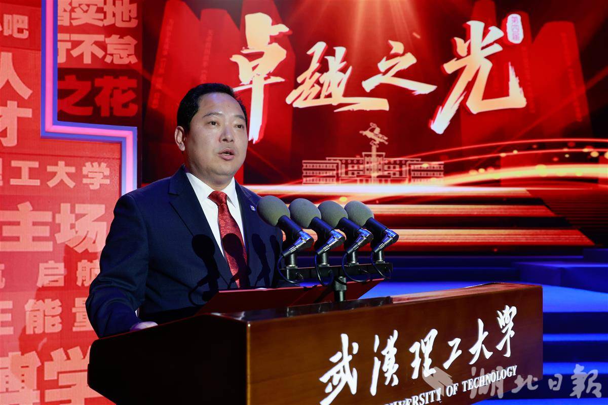 武汉理工大学党委书记孟芳兵致开幕辞。他表示,“卓越之光”理工故事展演会作为学校文化建设的重要载体,以身边师生、校友真实故事为原型,通过情景再现,生动展现武汉理工人爱国奉献、追求卓越的精神风貌。