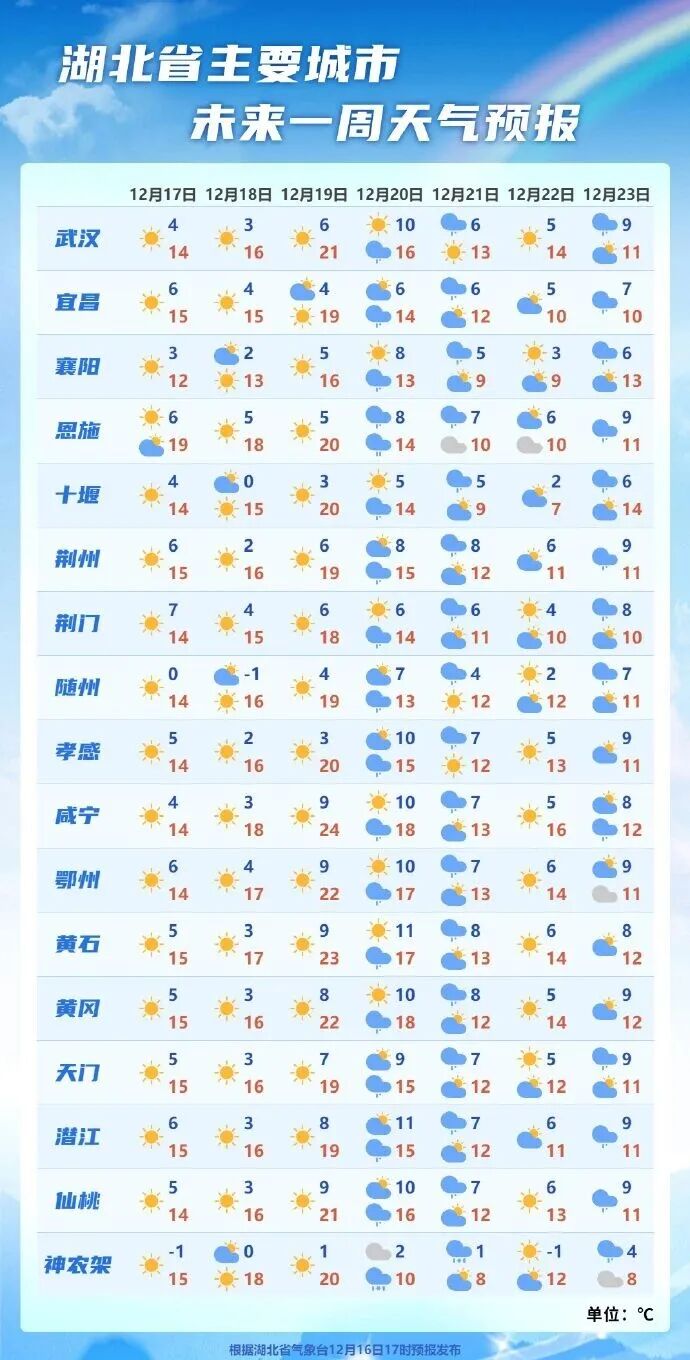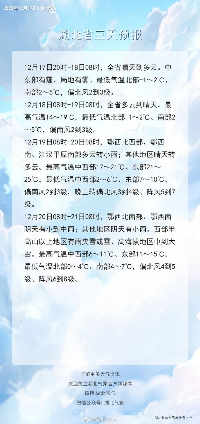 湖北省以晴或多云天气为主