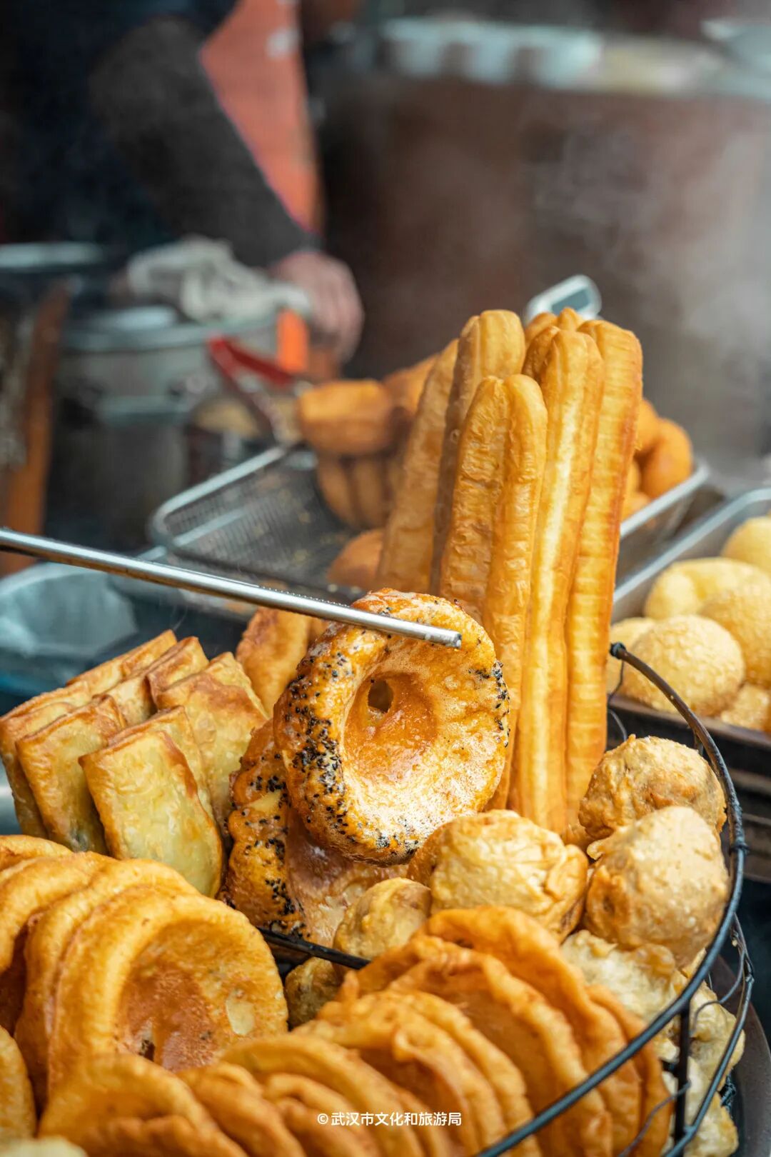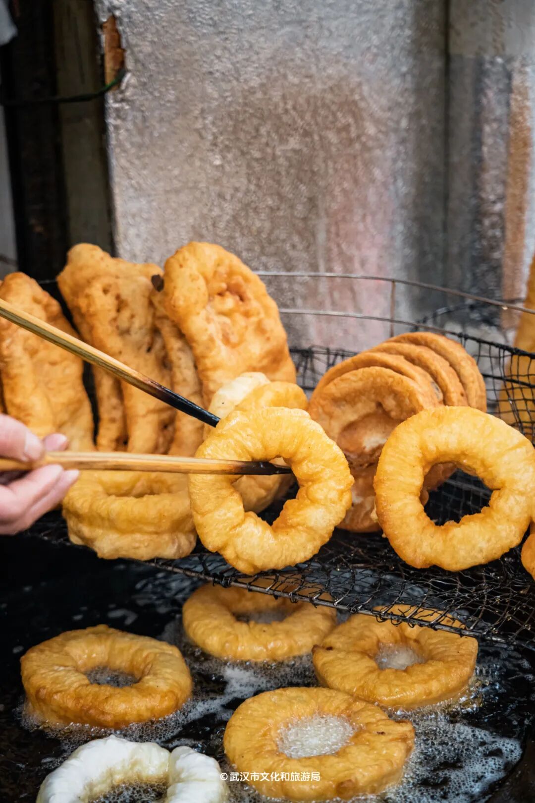 ○油墩,算是武汉版甜甜圈,面糊里加了糖粉,吃起来甜丝丝的,口感轻盈蓬松