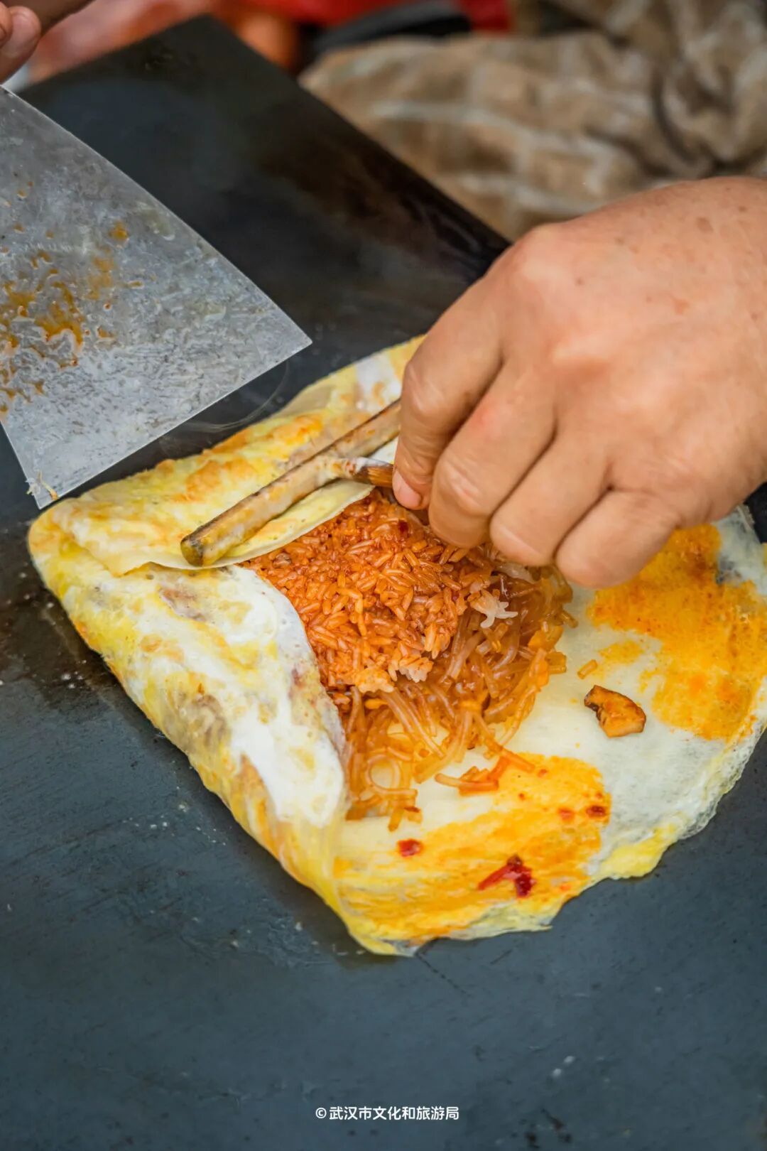 蛋光豆皮,过早中的顶奢。武汉其它过早都是碳水炸弹,便宜顶饱。只有它,要慢工细活,用荤臊子撑起了所有。