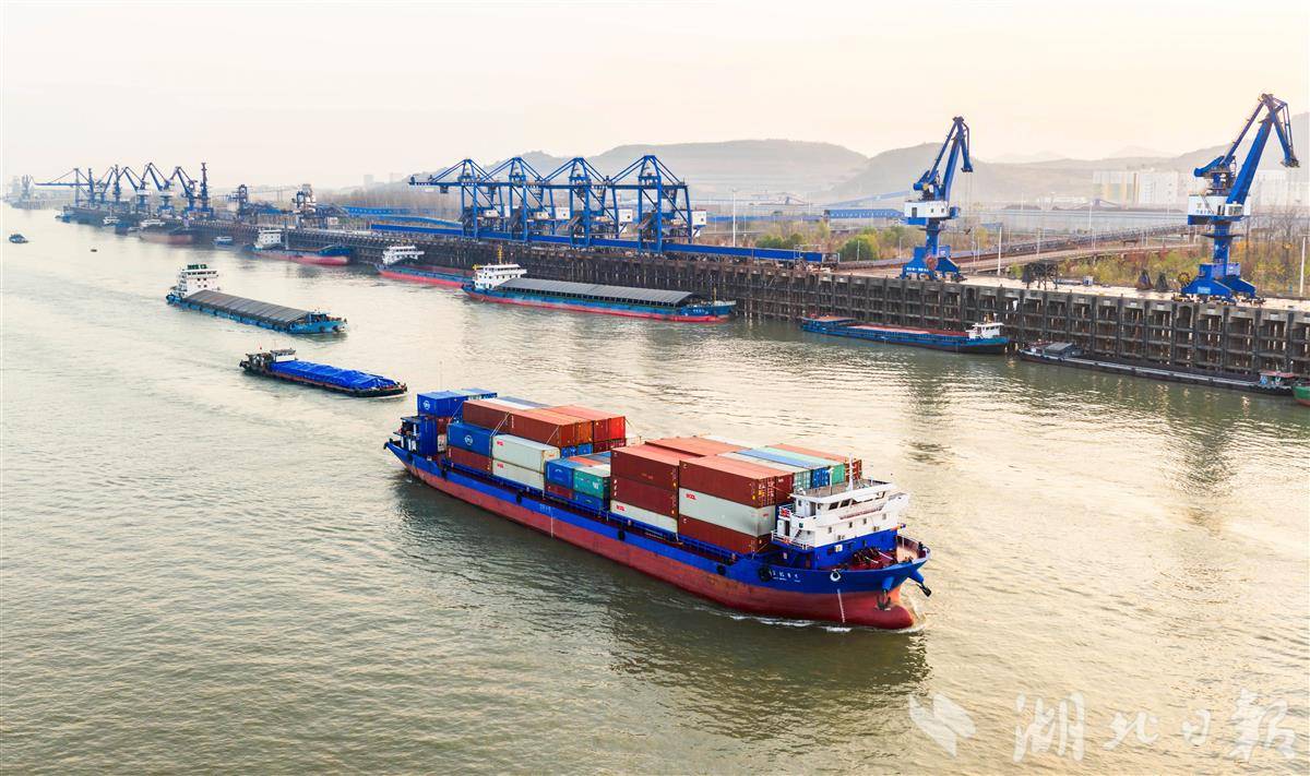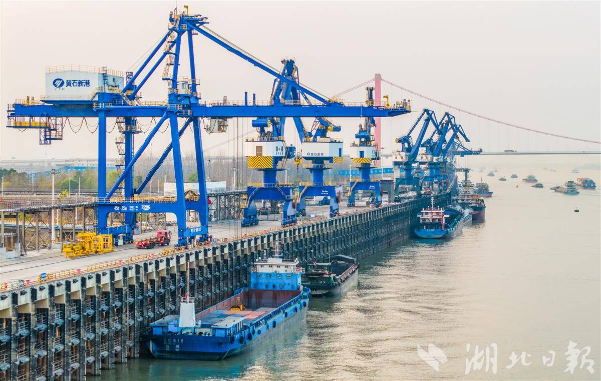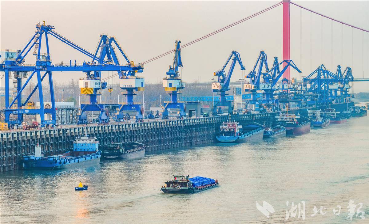 12月16日,黄石新港港口各作业码头,运输车辆穿梭如织,货物进出繁忙。