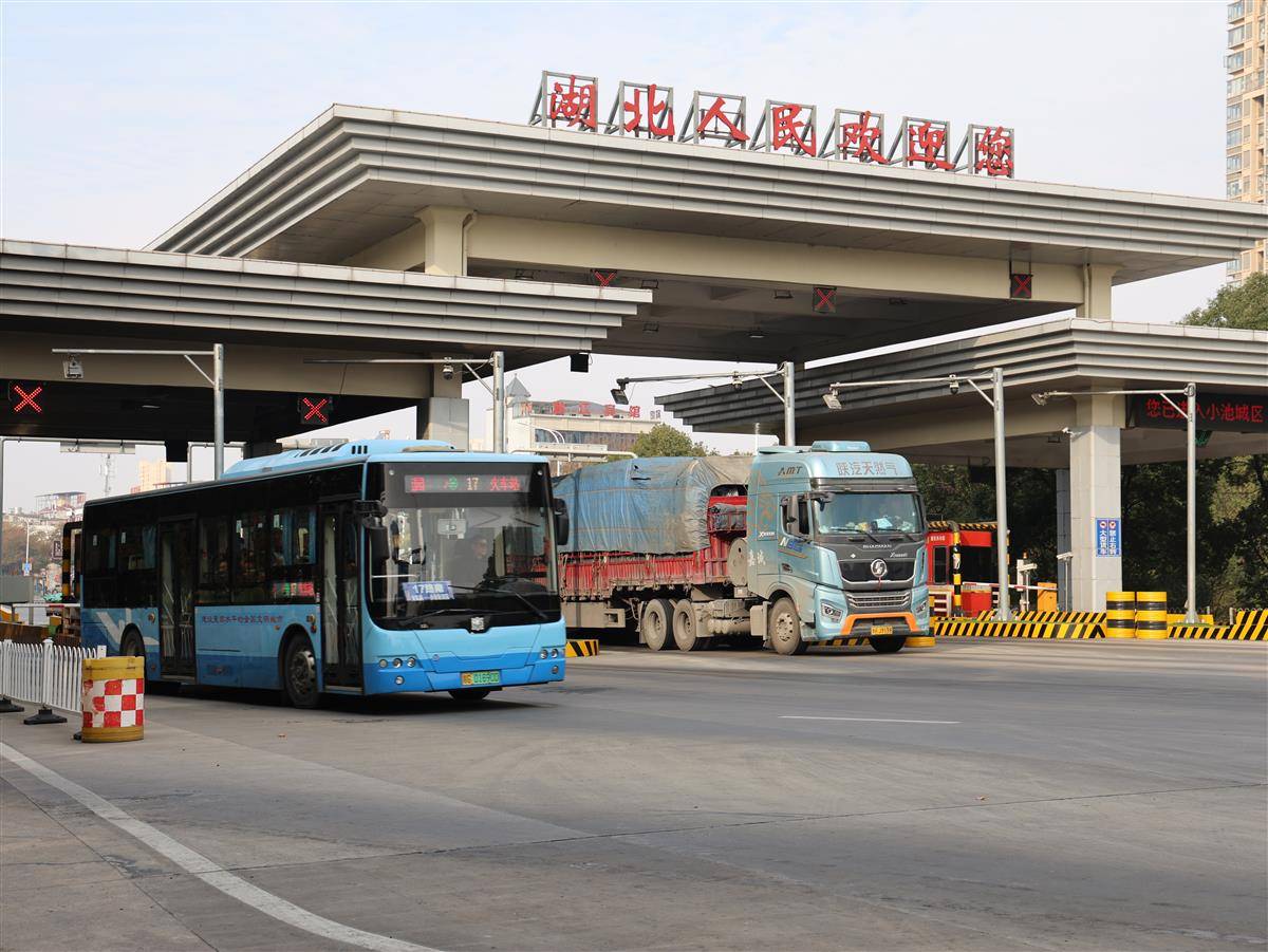 跨省公交17路和物流货运车每日在两地穿梭。(湖北日报全媒记者刘毅摄)