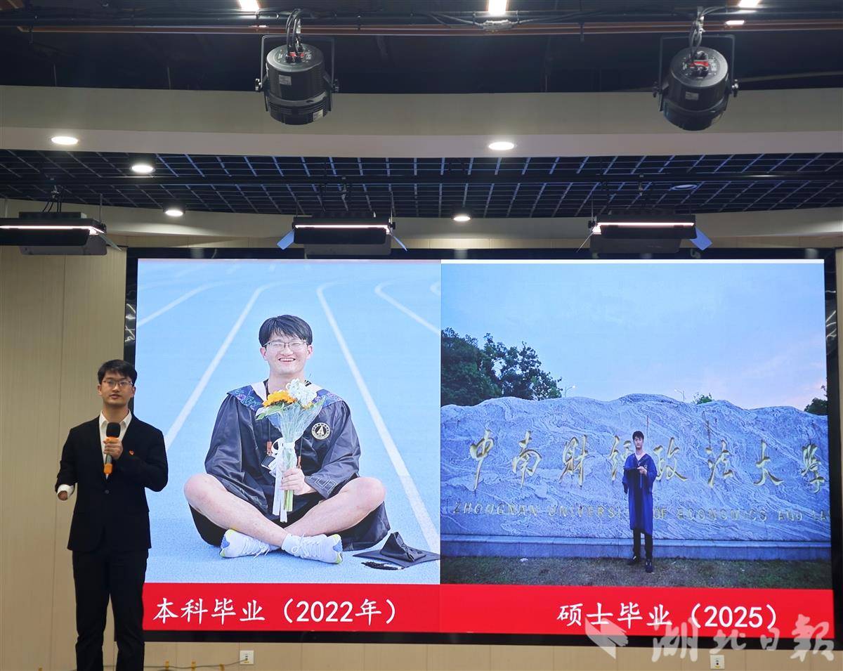 江剑来自安徽农村,7岁的时候,因为车祸失去了右臂。七年前,他用左手答题,以总分633分的成绩考入中南财经政法大学;两年前,他又以优异的成绩考取该校研究生。今年7月,研究生毕业的他,成功通过选调生考试,在张湾街道开始了新征程。
