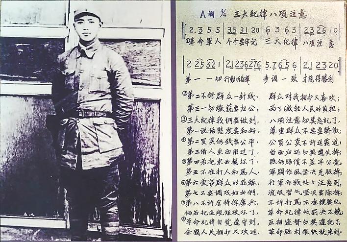如何让“不拿群众一针一线”的铁纪深入人心?时任红十五军团政治部秘书长程坦将毛泽东同志提出的《三大纪律八项注意》书写了一遍,要求下边贯彻执行。但光让大家背诵,效果不见得很好,尤其是部队中有些战士不识字,记起来困难。程坦与来自大悟、年仅18岁的宣传科科长刘华清商量,将《三大纪律八项注意》改编成朗朗上口的九字节歌词。