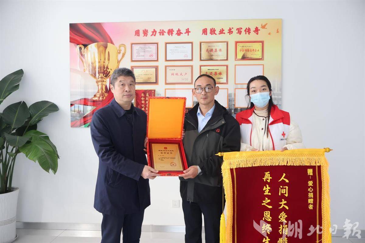 12月19日早上9点,江陵县红十字会送来了湖北省红十字的颁发的锦旗和荣誉证书,刘明笑着说:“能去实实在在帮助别人,让一个家庭重燃希望,便是对自己最大的褒奖。”