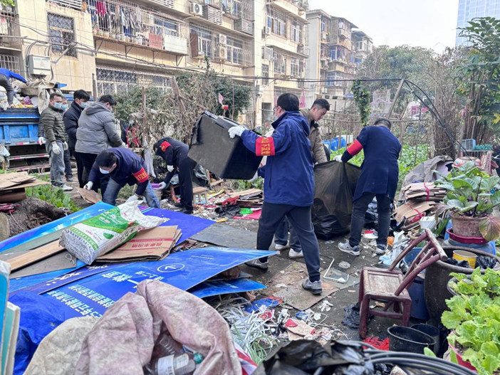 湖北日报讯(通讯员金宁雁)为深入推进“我为群众办实事”实践活动,消除居民楼消防安全隐患,12月18日,武汉市洪山区卓刀泉街道五环社区联合下沉单位湖北省信产通信服务有限公司科技咨询分公司,开展“爱护社区环境 共创美好家园”主题志愿服务活动。由下沉党员、大学生志愿者及社区工作者组成的40余人服务队,聚焦邮电学校家属区“楼道堆物”顽疾,为居民清障护航。