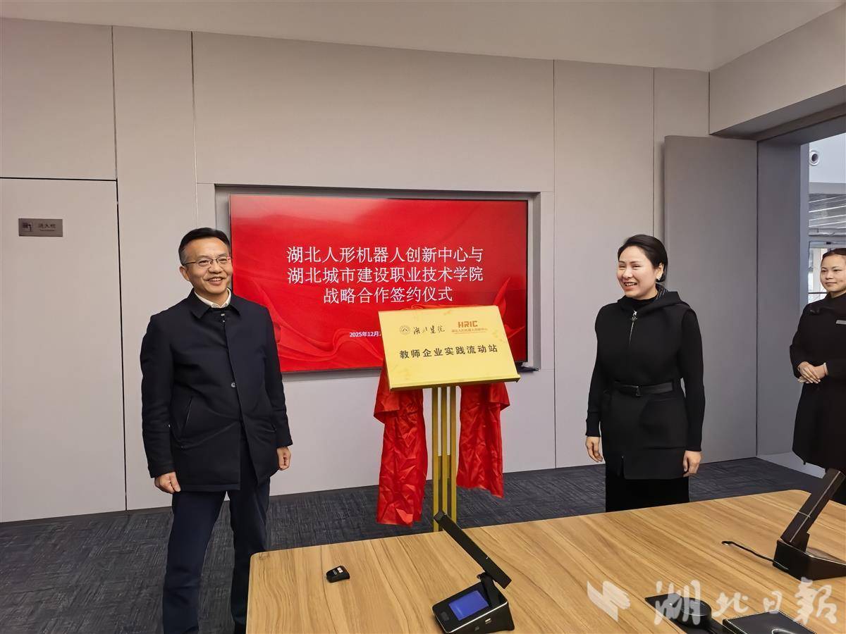 会上,双方签署《湖北省科技投资集团有限公司与湖北城市建设职业技术学院战略合作框架协议》和《湖北人形机器人创新中心有限公司与湖北城市建设职业技术学院人才培养校企合作框架协议》。“教师企业实践流动站”与“校外实习实训基地”正式揭牌。此次合作为资源整合、平台共建奠定基础,标志着合作进入制度化、常态化阶段,打通“育用衔接‘最后一公里’”。