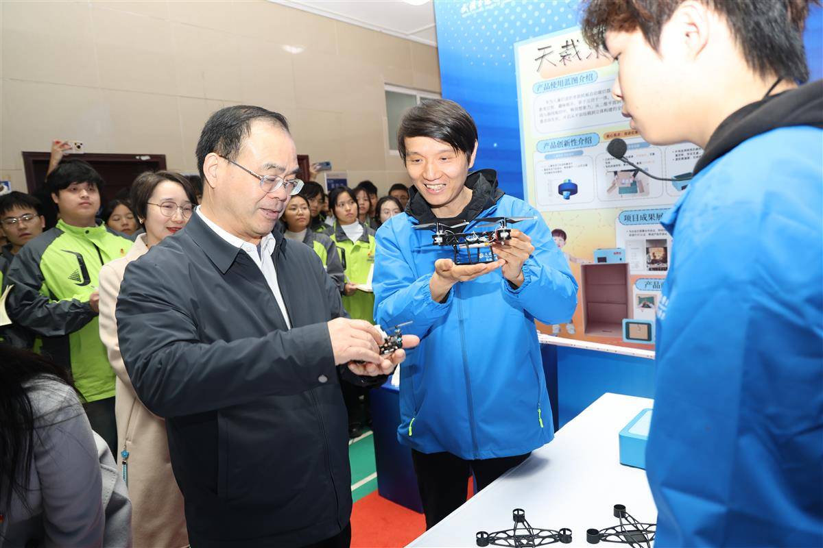 在“奖耀思政”展区,91项省级以上荣誉奖牌、证书构筑起一面“荣耀墙”。在“知行合一”展区,师生们通过视频了解学子们参与社会实践、志愿服务的青春风采。创新创业展台摆放着“互联网+”创新创业大赛的获奖作品实物。