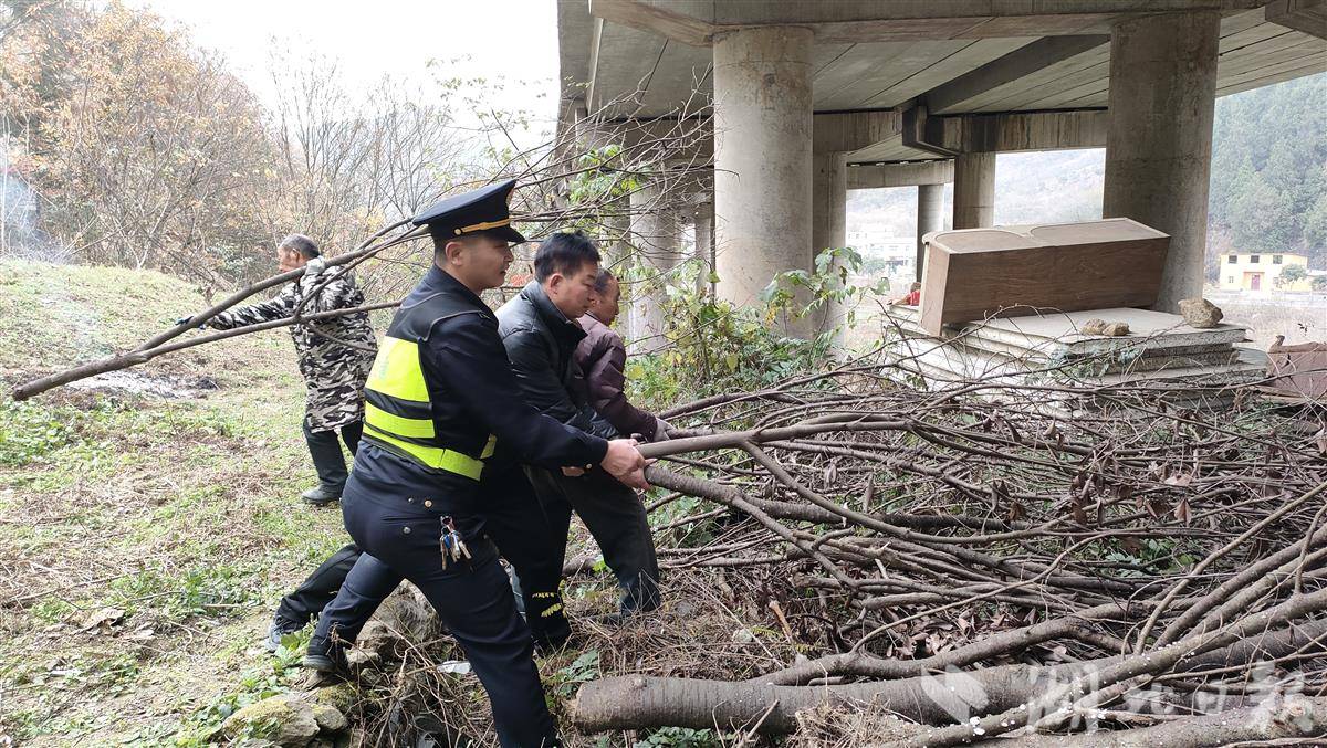 在普法过程中,工作组了解到部分村民虽有清理意愿,但受限于人力物力,难以自行完成堆积物的搬运工作。为此,大队积极协调鄂西北公司第一巡检办调派工人和货车,为村民提供实实在在的帮助。当天下午,一场桥下空间集中清理行动在柳家河村展开。执法队员、巡检办工人与村民们一起,将桥下堆积的杂物彻底清理转运。原本杂乱拥堵的桥下空间逐渐变得整洁通畅,安全隐患得以消除,村民们的脸上也露出了安心的笑容。“最近发生的火灾案例让我一直深感不安,看着桥下堆放的木材完全转移,我心里也踏实多了。”柳家河村老党员王有兵有感而发。