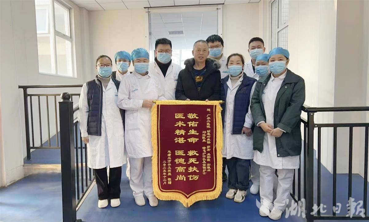 湖北日报讯(通讯员刘小斌、胡芝玲、徐恋)“敬佑生命救死扶伤、医术精湛医德高尚!”近日,一面鲜红的锦旗被郑重送到广水市第二人民医院感染科医护人员手中,患者家属紧紧握住医护人员的手反复致谢,言语间满是对24天生死守护的感恩之情。这面锦旗背后,是一场高龄重症患者的生命救援,更是基层医护人员践行医者初心的生动写照。
