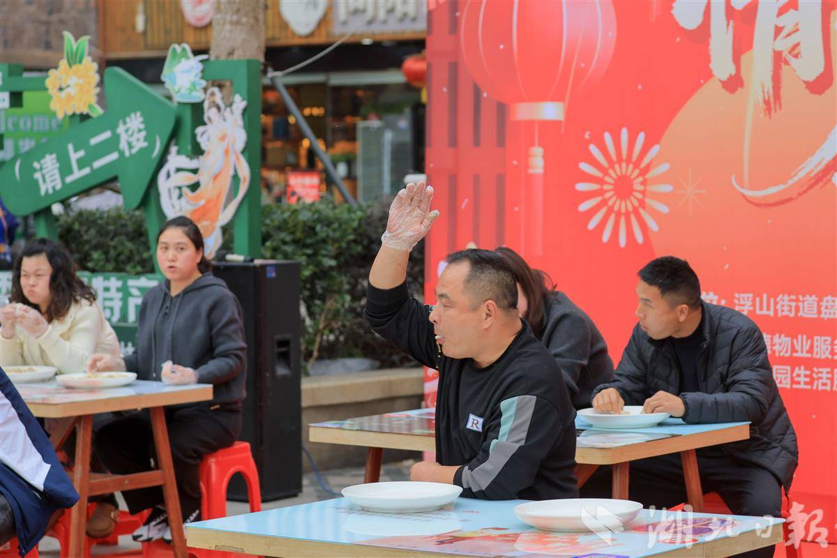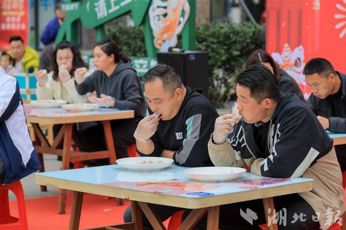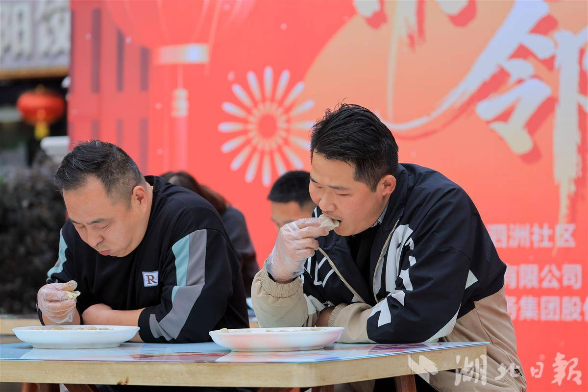 12月19日,咸宁市咸安区浮山街道盘泗洲社区举办“情暖冬至,邻里同乐”活动,居民们相聚在一起,以吃饺子趣味比赛的形式迎接即将到来的冬至节气。(视界网 吴涛 摄)