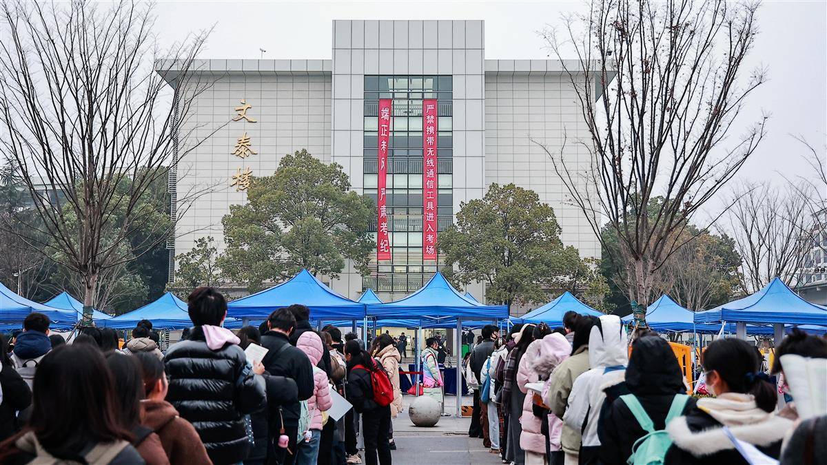 2025年12月20日,2026年全国硕士研究生招生考试开考,在中南财经政法大学考点,大批考生冒着寒冬排队入场。据了解,2026年全国硕士研究生招生考试全国报名人数为343万,共设考点2433个,考场12万个。(湖北日报全媒记者 何宇欣 通讯员 崔桢桢 摄)