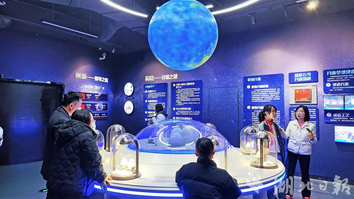 12月14日,武汉科学技术馆内,月球空间展区吸引众多家长驻足观看。