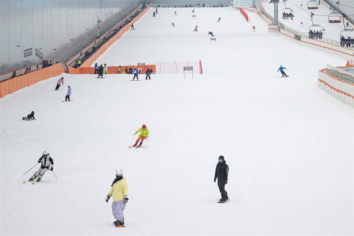 12月21日,市民在武汉黄陂甘露山国际滑雪场滑雪,畅享冰雪乐趣。当日,2025“与冬共舞”湖北冰雪运动消费季(主会场)暨武汉大众冰雪季在武汉甘露山文创城开幕。(湖北日报全媒记者 任勇 摄)