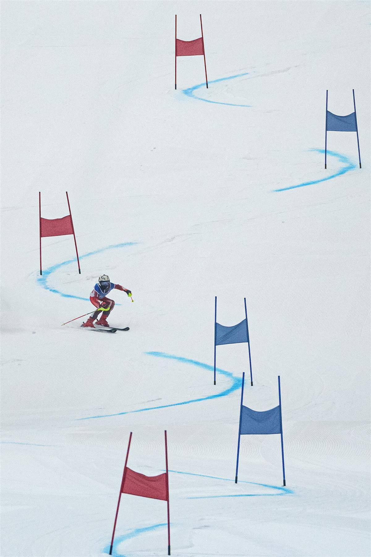 12月21日,2025“与冬共舞”湖北冰雪运动消费季开幕式当天,第三届全国青少年滑雪巡回赛武汉站暨“武汉城建杯”第二届全国滑雪公开赛同步开赛,吸引了约200名全国各地的青少年滑雪运动员同台竞技。图为小选手们在黄陂甘露山国际滑雪场比拼高山滑雪大回转。(湖北日报全媒记者 任勇 实习生 张艺馨 摄)