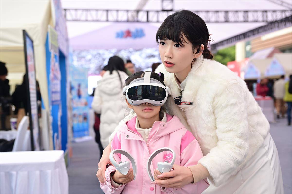 女孩佩戴VR设备,身临其境感受高山滑雪的速度与激情