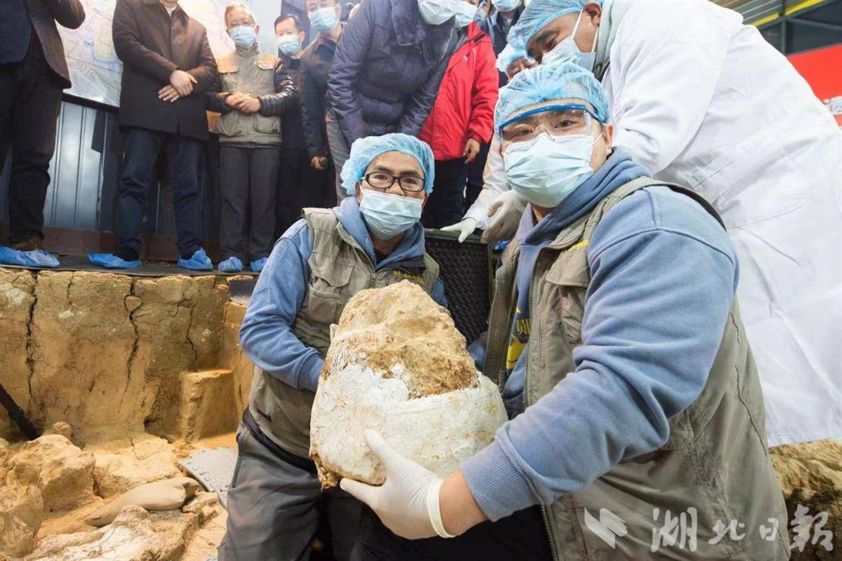 十堰学堂梁子遗址入选2022年度全国十大考古新发现。图为“郧县人”3号头骨被提取出土。(湖北日报全媒记者何宇欣摄)