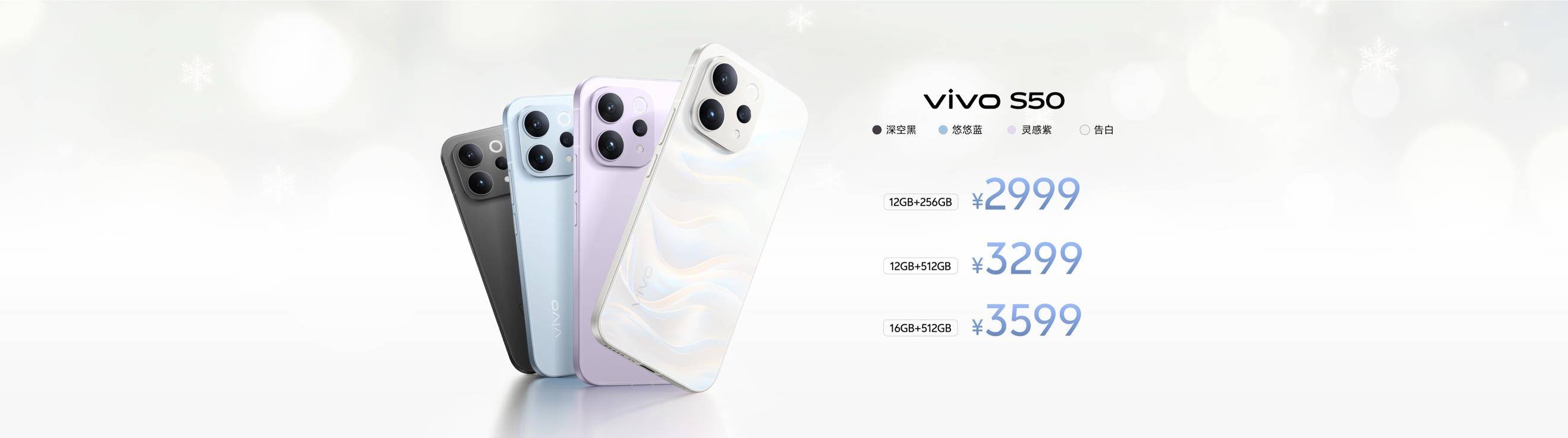 全新的vivo S50系列以色彩与工艺,进一步诠释“我喜欢我,每秒都生动”的态度。S50系列带来全新「告白」配色,在缎面柔光玻璃背板上引入全新纱缎光刻工艺,呈现白里透金的细腻光泽,观感更柔和、触感更温润且不易沾染指纹,如冬日暖阳般温柔治愈。仿佛将一份触手可及的温柔握在掌心,提醒我们在纷繁世界中,依然可以留出一份温柔,去拥抱那个独一无二的自己。在「告白」之外,vivo S50还提供灵感紫、悠悠蓝、深空黑三种配色,vivo S50 Pro mini精选告白、灵感紫、深空黑三款配色,覆盖从治愈浪漫到沉稳内敛的多彩选择。
