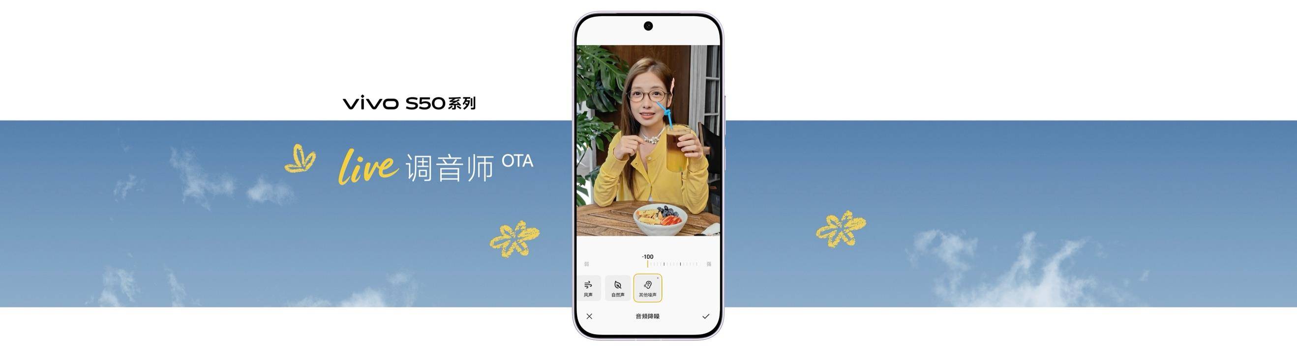 完美的创作不应被后期束缚。S50系列通过“Live 路人消除”、“Live 调音师”和“AI 定制美颜”等功能打通“最后一公里”,智能消除路人、灵活调整声音。还有全场景适用的“清透自然人像”,拍出自然美,让人像更通透、更自然、更真实。