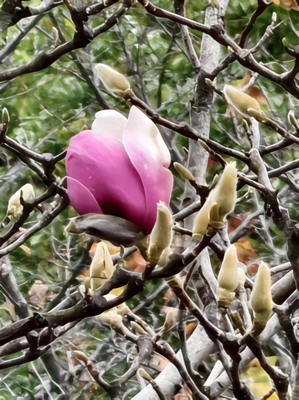 冬至次日,武汉的玉兰花开了。
