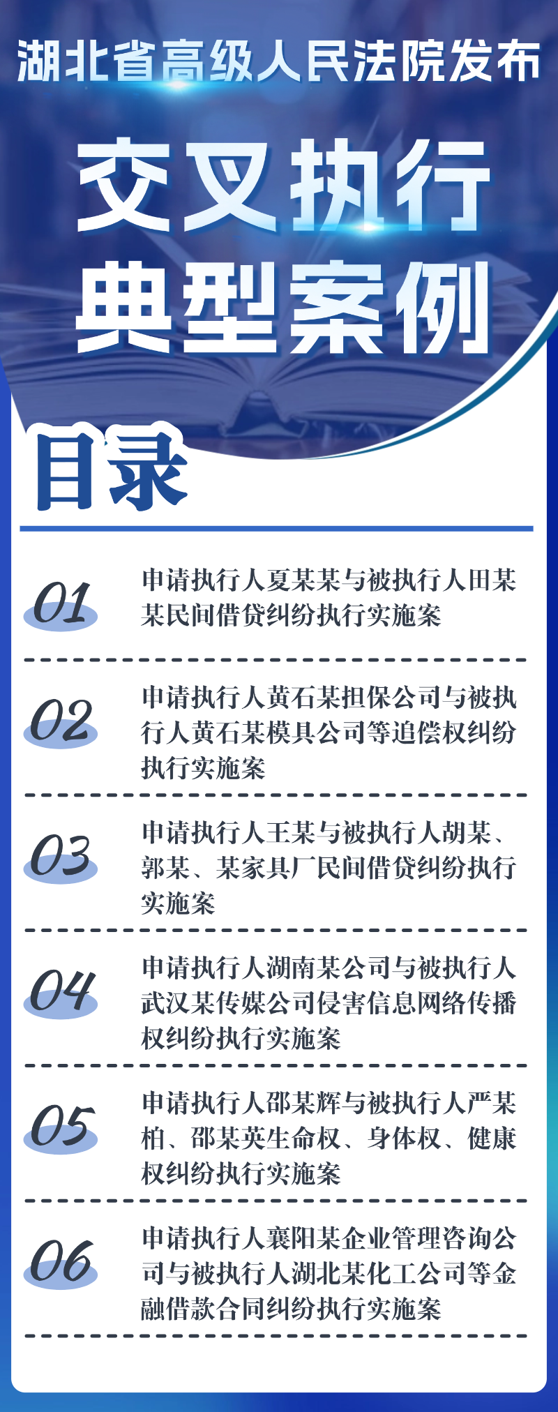 湖北日报讯(记者曾雅青)12月22日,湖北省高级人民法院发布6起交叉执行典型案例。
