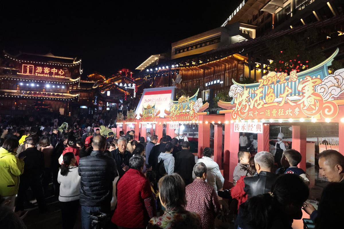 “老板,来一份鲊广椒味儿烤活鱼!”12月20日傍晚,宣恩贡水河畔灯火璀璨,从街头延伸至巷尾的烤鱼店里人声鼎沸,炭火炙烤的活鱼香气扑鼻。