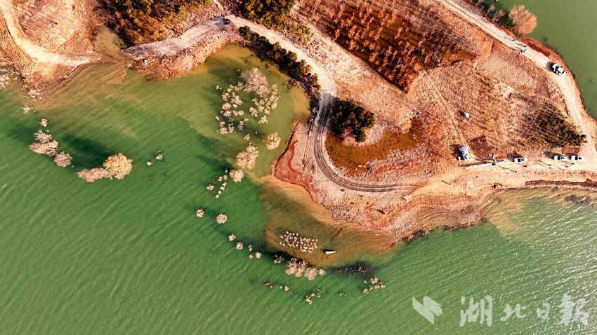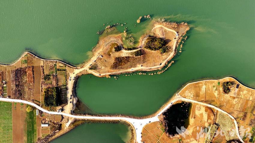 湖北日报客户端讯(通讯员王涛)冬至时节,在汉江十堰市郧阳区柳陂镇龙韵村段,水天一色、草木萧瑟,江心小岛和水上公路浮于江面,吸引游客前来欣赏打卡。