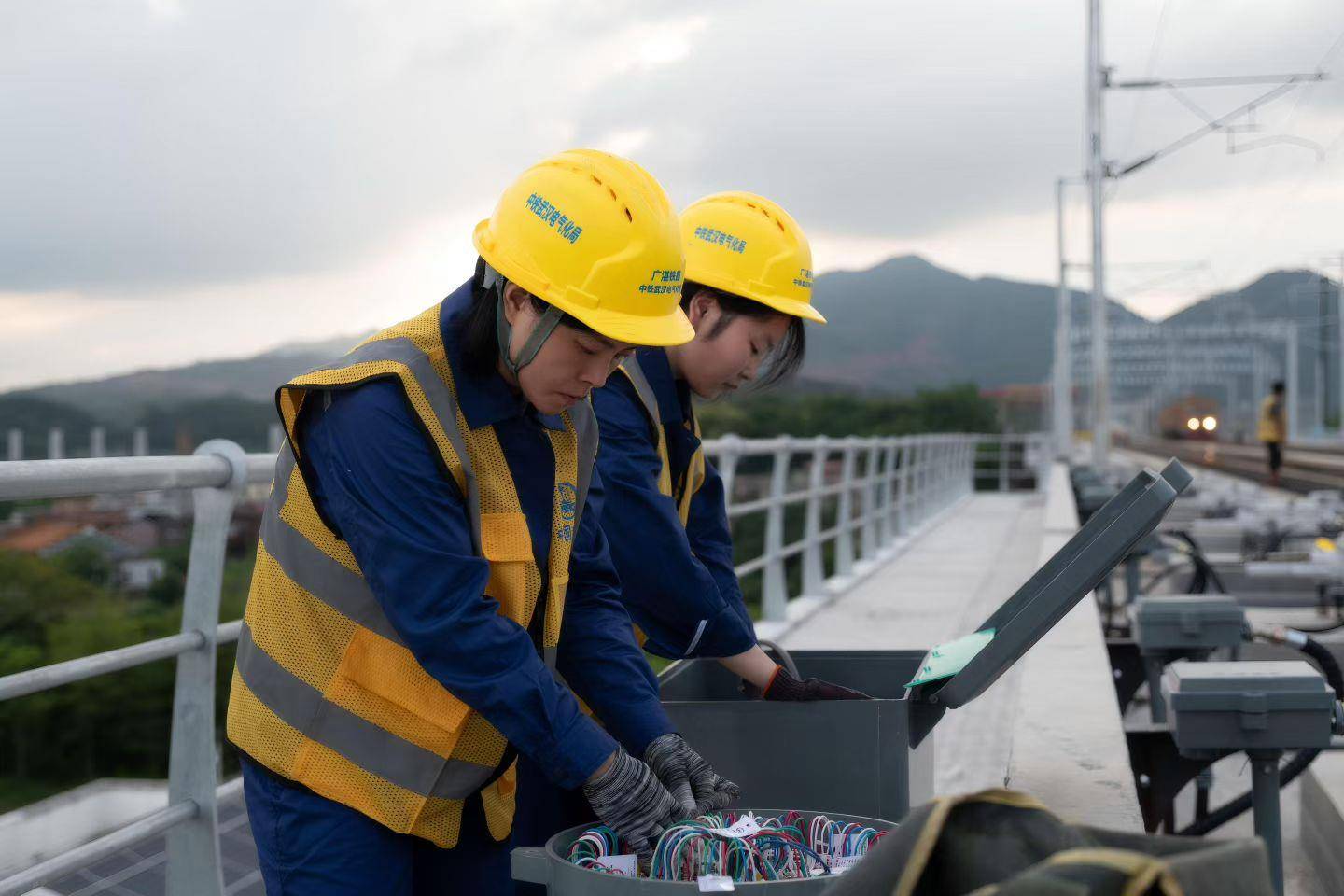 中铁武汉电气化局主要承担珠三角枢纽机场段的通信系统、信号系统、自然灾害及异物侵限监测系统的施工任务。面对工期紧张、任务繁重以及极端高温暴雨等多重挑战,项目团队专门成立工艺深化小组,编制多项作业指导书与工艺手册,稳步推进工程建设。其中,信号系统由荣获“全国工人先锋号”“全国优秀质量管理小组”称号的信号女子突击队牵头施工。这支业务精湛的巾帼团队曾参与全国数十条高铁建设,此次在广湛高铁中,她们以细致专业的操作,精准连接千万根设备“神经”,通过分层布线工艺,实现机房线缆横平竖直、出线统一、焊点光洁饱满,真正做到“平、整、齐、美”。