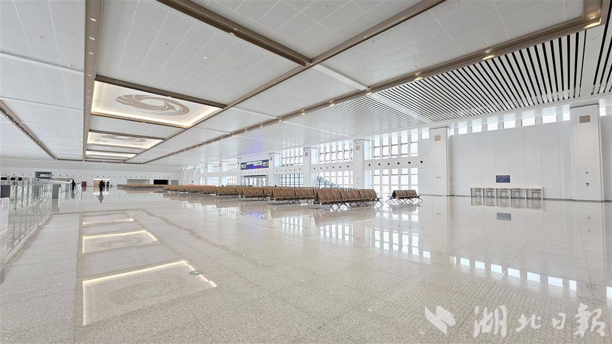 站内候车大厅空间开阔,自然光线通透,暖色调营造温馨氛围,可容纳5000人同时候车,环境舒适现代。高铁开通后,350公里时速将重塑鄂西交通版图。(湖北日报全媒记者 陈少哲 摄)