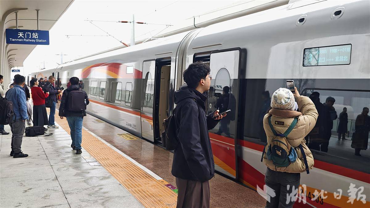 12月23日,媒体记者团试乘G9385次复兴号智能动车组,从汉口站出发,亲身体验即将开通的沿江高铁武宜段,首站抵达天门站。