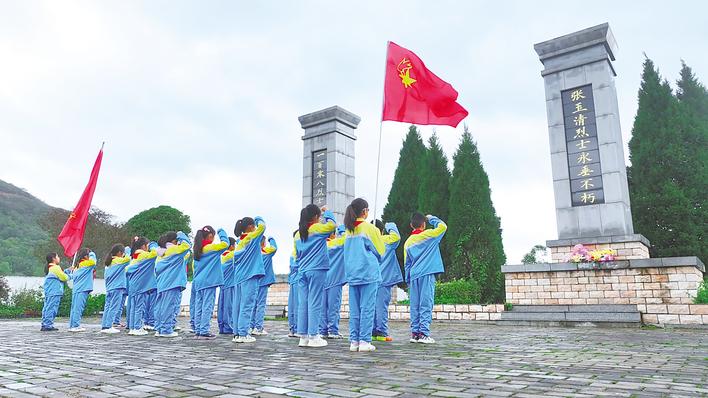 小学生在孝昌县双峰英烈园缅怀烈士。(湖北日报全媒记者 方桐 通讯员 吴荣 杨艳容 摄)