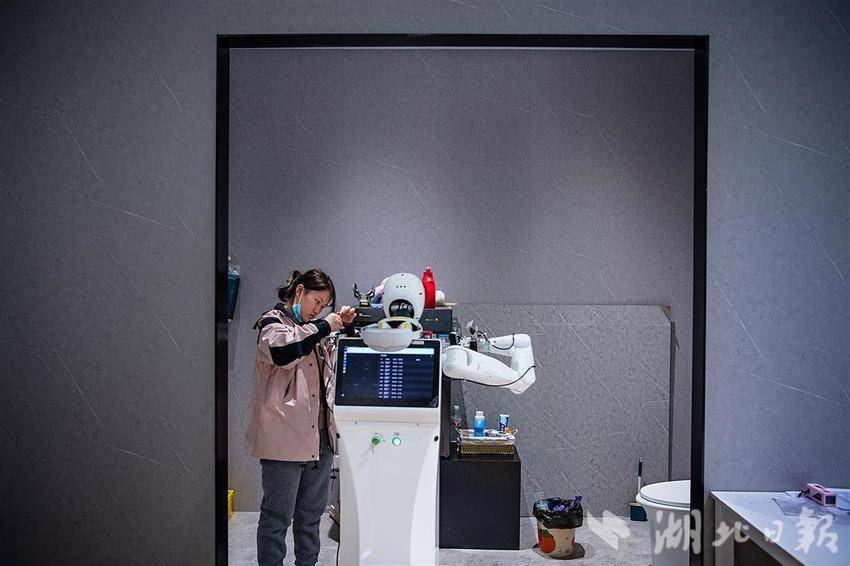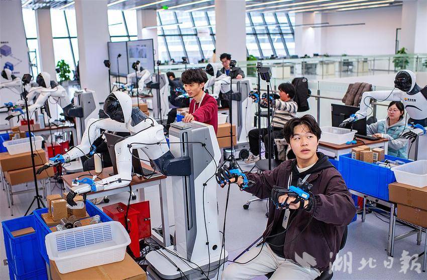 湖北人形机器人创新中心有30多名机器人训练师,100余台训练机器人。目前启动的7000多平方米的空间内,分布着动作训练、数据采集和应用实践三大功能场。中心采用全真机采集方式,从家居整理到餐厅出餐,从工业搬运到商业理货,训练师们在23个生活化场景中,为机器人备课。