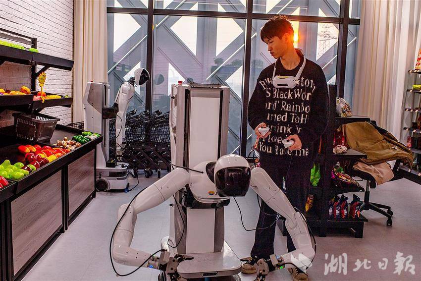 2003年出生的瞿琼彬,毕业于武汉城市职业学院人工智能专业,今年4月通过校招入职公司,担任数据采集员岗位。“初入公司时,我主要进行一些基础的机器人操控练习,像简单的物品抓取和放下等动作。”瞿琼彬说,“如今,我已经能够熟练地教导机器人完成叠衣服、叠毯子这样精细的任务,甚至还能让机器人按照步骤制作咖啡。”