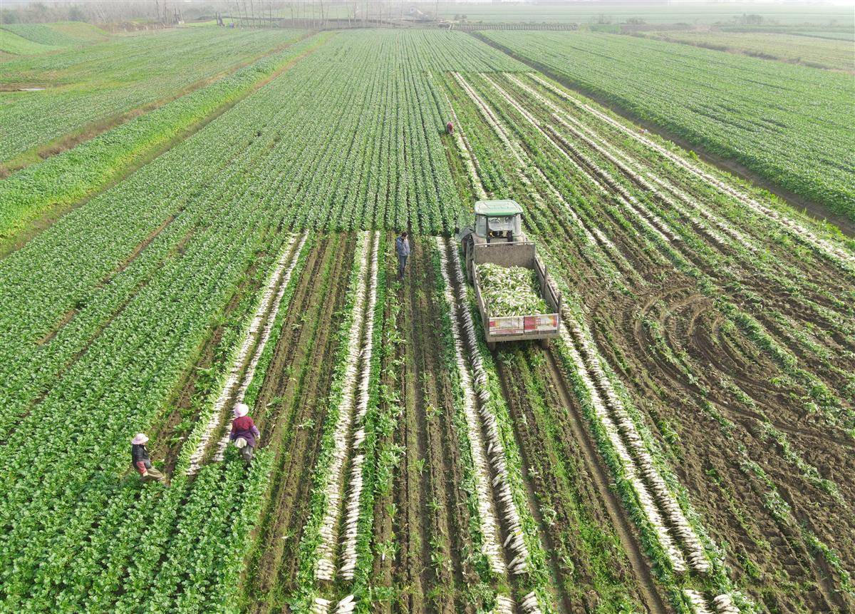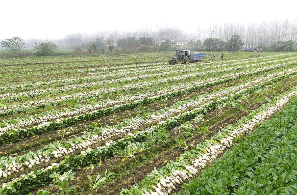 不远处的蒋湖农场的加工车间里,一批“泡菜专用”小萝卜正通过自动化生产线清洗、切割、盐渍,准备发往韩国及东南亚市场。