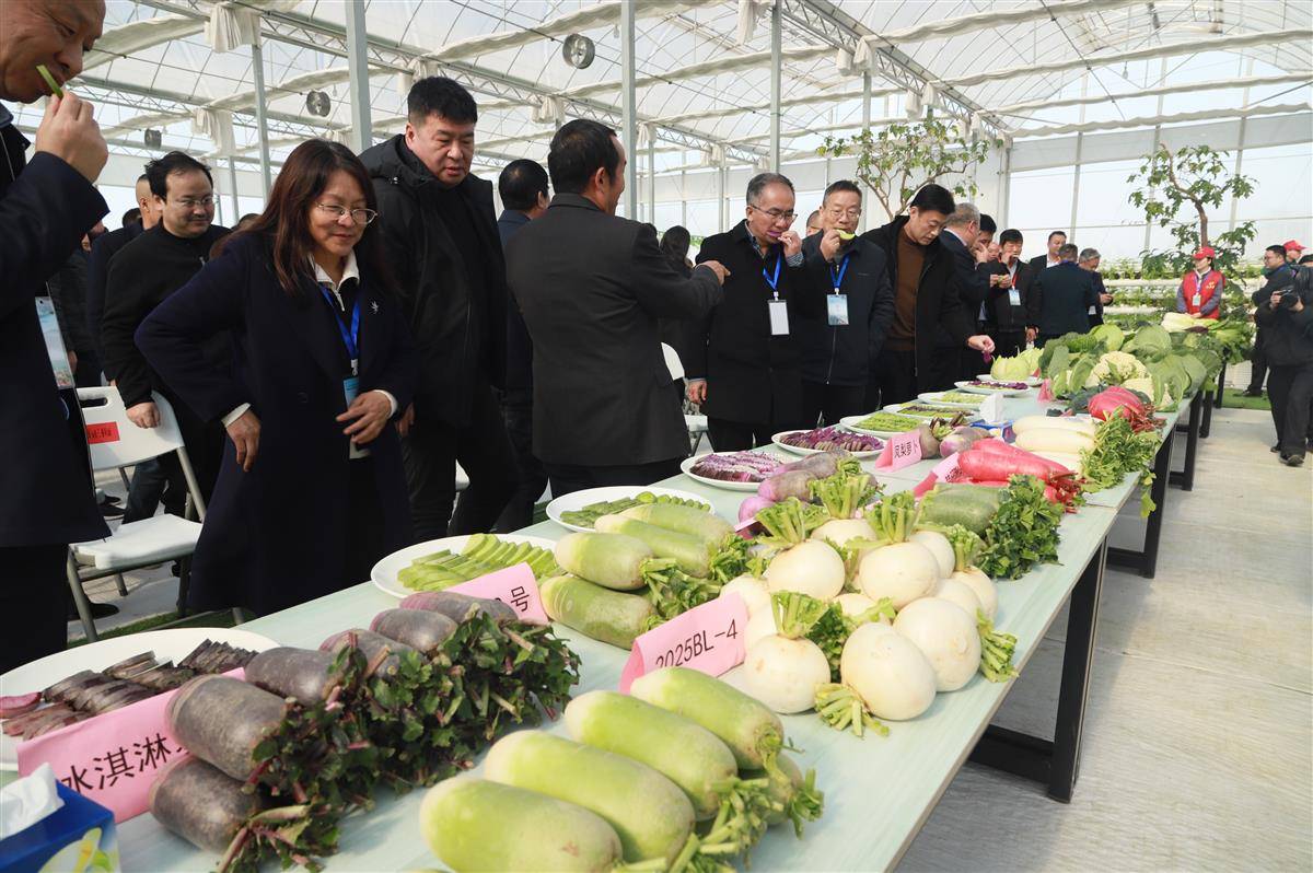 12月6日,2025年江汉平原(天门)健康蔬菜品鉴与产销对接会在蒋湖农场举行蔬菜新品品鉴推介。(湖北日报全媒记者 赵莎莎 摄)