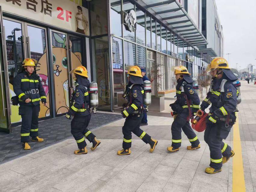 本次演练模拟商场二层某商铺因用电不当引发“火情”,浓烟迅速蔓延。商场消防控制室第一时间发现并确认火警信号,值班负责人立即启动内部应急预案:一方面迅速拨打“119”报警电话,清晰报告火场位置、初步情况;另一方面,通过应急广播系统循环播放疏散指令,商场微型消防站队员率先赶往现场确认并尝试初期处置,各楼层安全员则立即按照预案分工,引导顾客和商户沿最近的安全出口、疏散通道,低姿、捂口鼻,快速有序撤离至室外安全区域。
