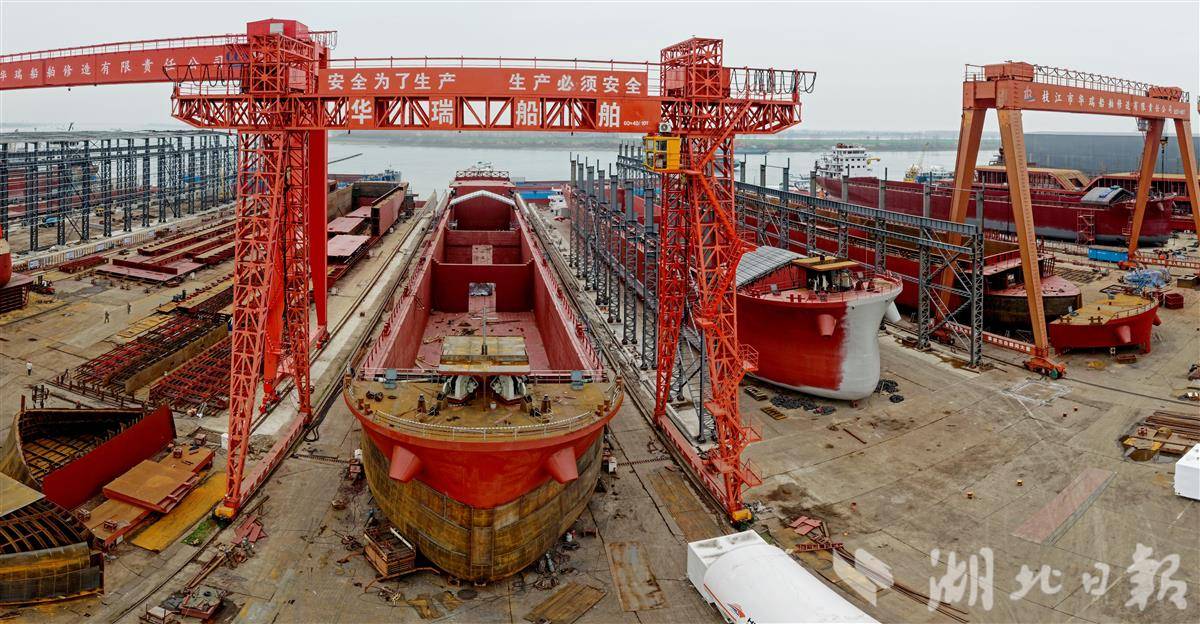 作为湖北省重要的船舶制造基地之一,该园区发展势头强劲,生产任务持续饱满。据悉,园区今年新接船舶订单达149艘,总金额30亿元,生产任务已排至2027年。近年来,园区聚焦绿色智能转型,新能源船舶订单占比显著提升,形成了“造新拆旧”的良性发展循环,为长江经济带高质量发展注入动力。(湖北日报全媒记者 刘曙松 通讯员 胡波 黄路遥 摄)