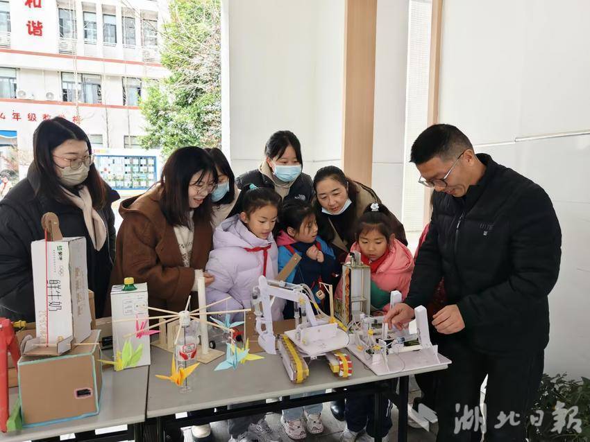 课间的科技实践活动展览区堪称“创意磁场”,吸引参会教师纷纷驻足。学生们的作品脑洞大开:环保材质打造的智能小发明、逻辑缜密的机械传动模型、创意十足的能源转化装置……每一件作品都承载着孩子们的好奇心与探索欲,让参会教师直观感受科学教育“落地结果”的鲜活力量,沉浸式触摸创意生长的脉动。