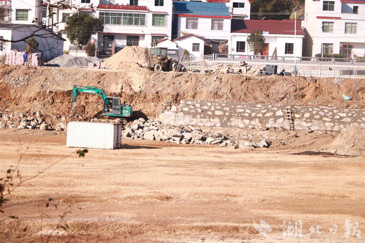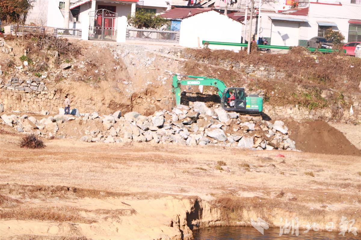 湖北日报讯(通讯员付向阳)12月21日,在湖北省黄冈市英山县孔家坊乡孔家坊村,工人在修建河道拦河坝。