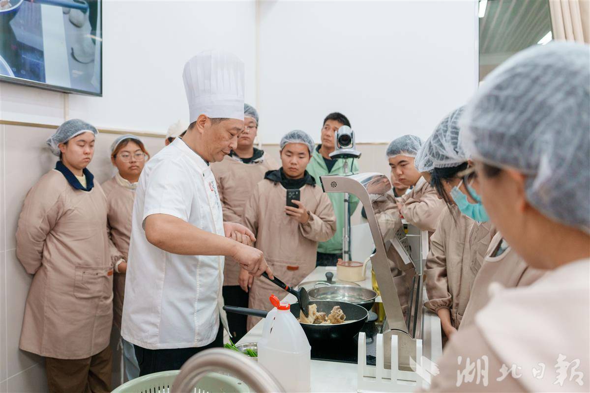 该课程围绕湖北饮食文化与热拌菜制作、沔阳三蒸、红烧武昌鱼、排骨藕汤、中式面点、西式烘焙及技能展示等内容,采用“理论讲解+示范操作+分组实践”的教学模式展开,让学生们在深入理解中华饮食文化的同时,掌握实用的烹饪技能。