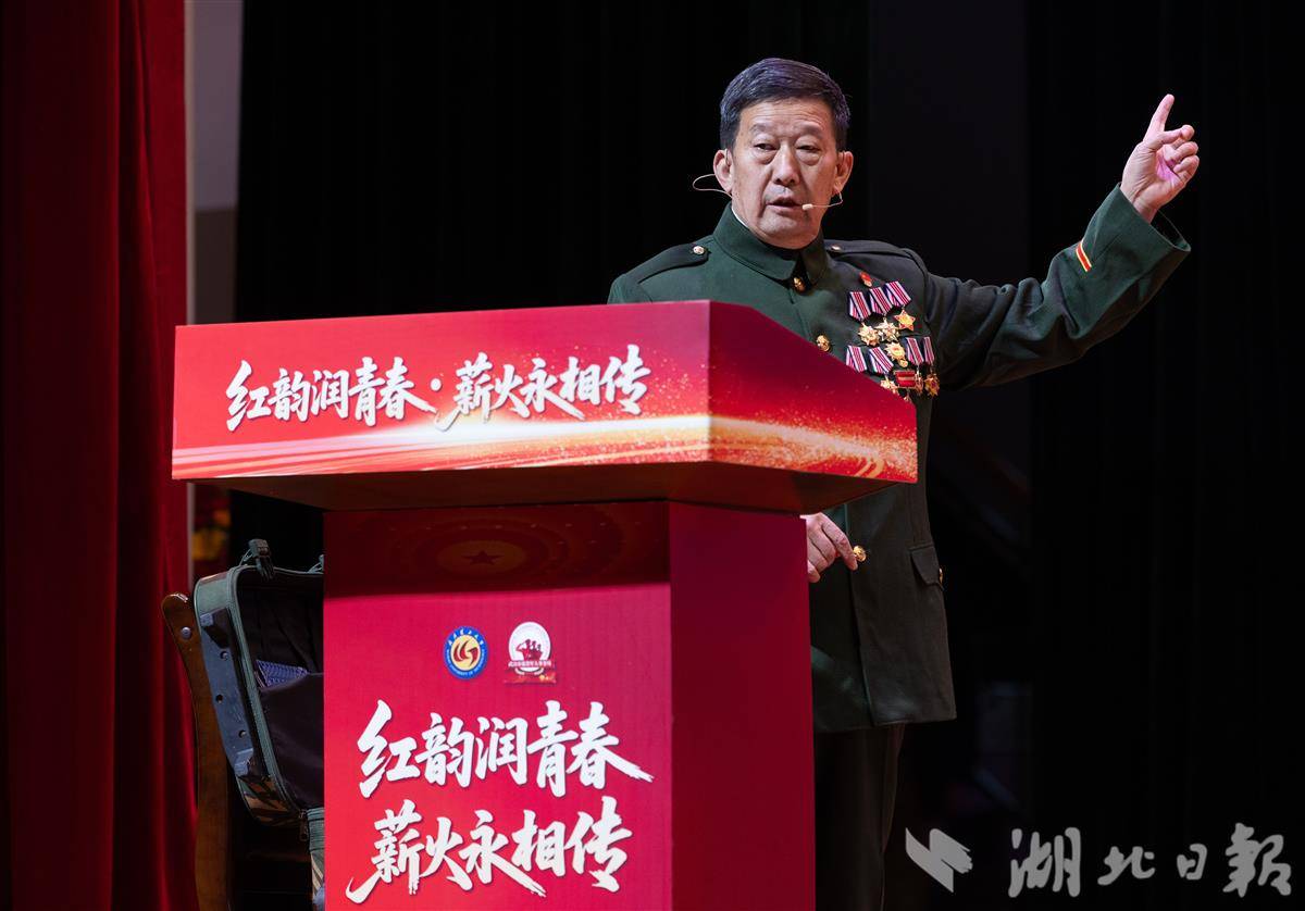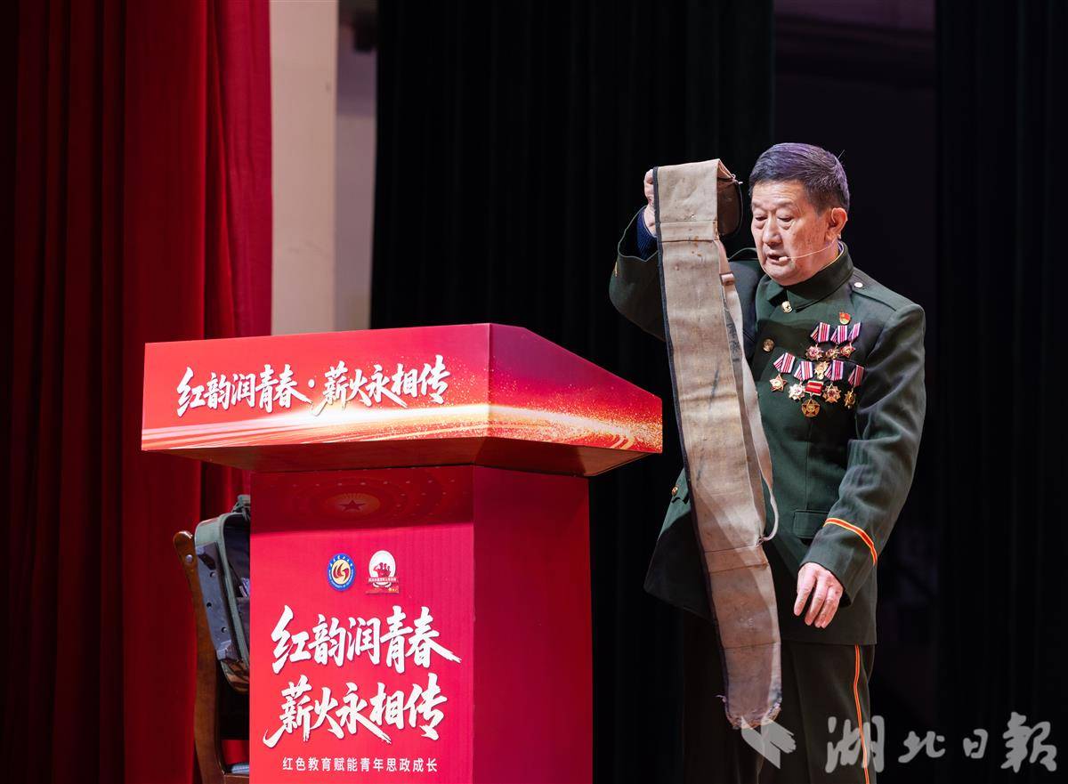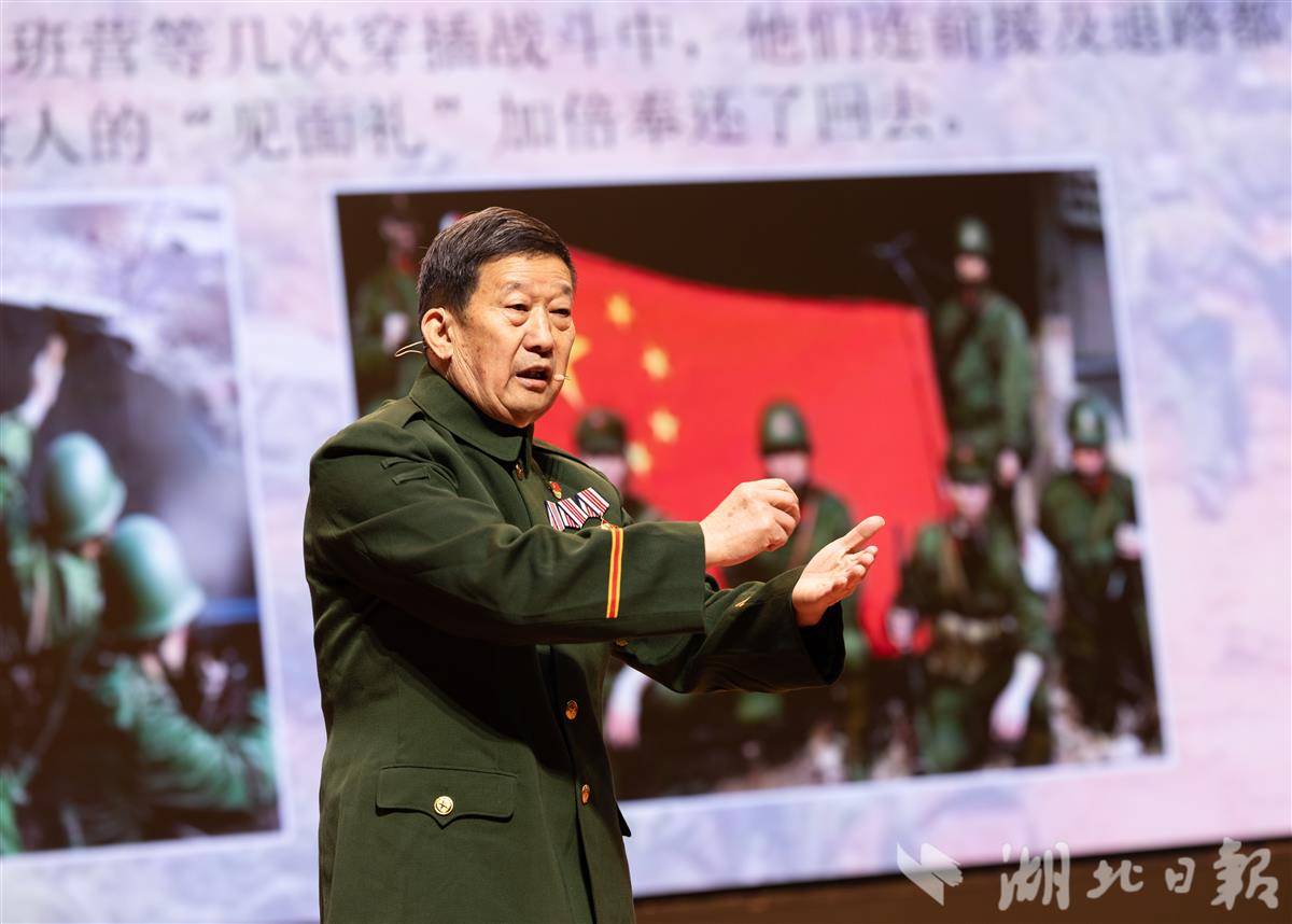 12月24日是长津湖战役胜利75周年纪念日,武汉理工大学近千名学生通过“听老兵故事、看红色展演、谈自身感悟”,深化对红色历史的理解,增强爱国情怀与责任担当。武警湖北省总队原副司令员刘耀来现场深情寄语青年学子:“少年强,则中国强!”(湖北日报全媒记者 薛婷 汤玮玮 摄)