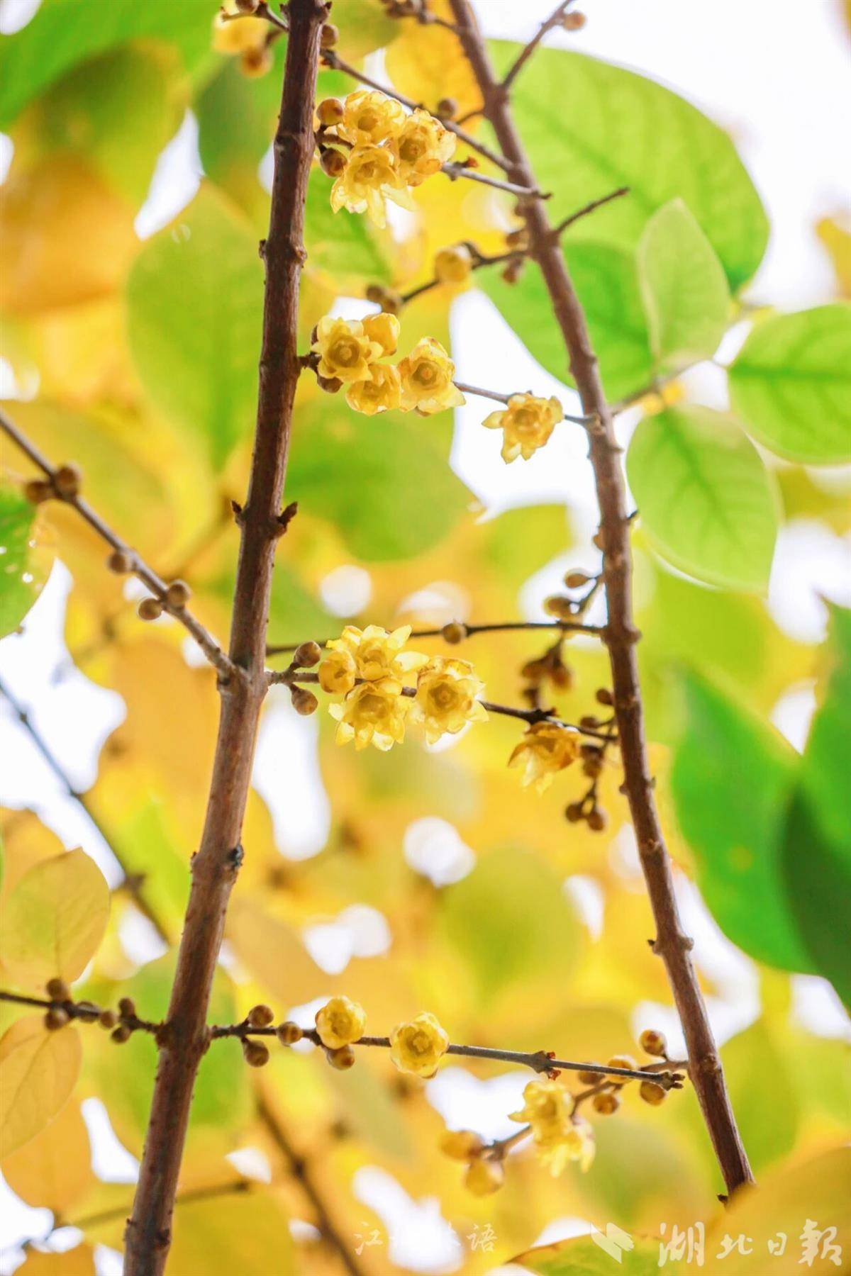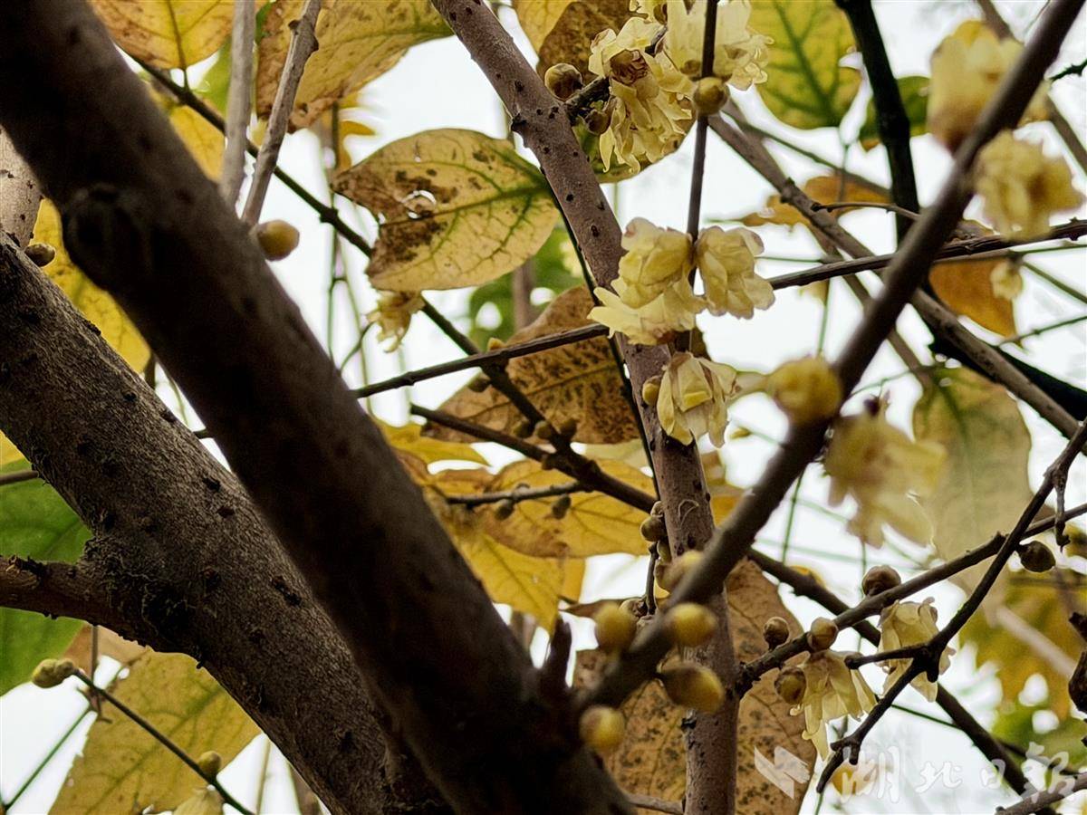 受气候偏暖影响,今年蜡梅不仅花期提前,还出现“花、果、叶同枝”的趣味景象。在市园林科普公园,一株被誉为“超长待机”的亮叶蜡梅自今年9月开花至今未谢,成为市民晨练时的“老熟人”。